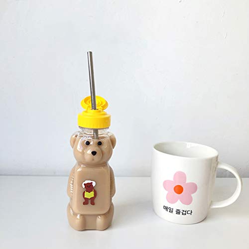 Specification: BOBEINI Lekvrije fles, mooie cartoon beer rietje beker waterfles met deksel lekvrij huis reizen paar