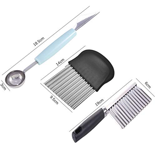 Specification: LxwSin Crinkle Snijgereedschap, Aardappel Wave Cutter, 3 stuks roestvrij staal gekartelde Cutter Aardappel Snijmes…