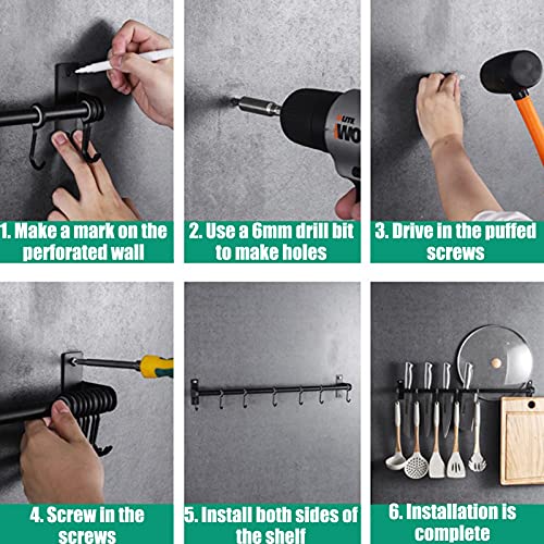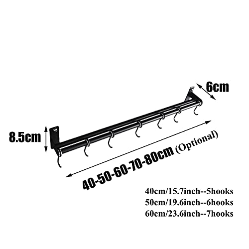 [Ruimtebesparende houder voor keukengerei] De pannenhanger maakt gebruik van de ongebruikte wandruimte van uw keuken en zorgt ervoor dat deze minder rommelig overkomt. Dit stalen rek voor keukengerei meet 40/50/60 cm, met 5/6/7 haken, die volledig verplaatsbaar zijn, zodat u de ruimte tussen elke haak gemakkelijk kunt aanpassen.