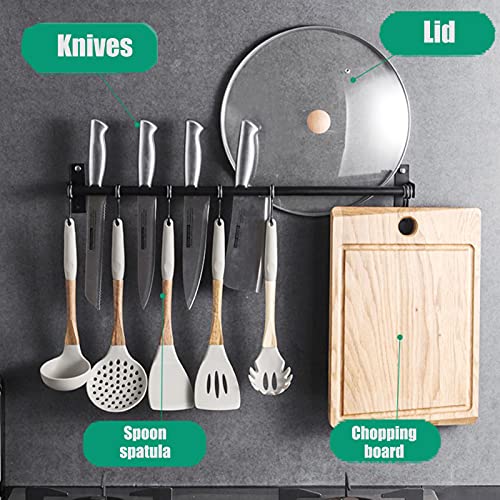 [2-in-1 keukenrek] De perfecte meshouder voor wandmontage bespaart ruimte en maakt de keuken netter. Aan de keukenrail-pannenhanger met haken kunnen de keukenschep, pan, snijplank en ander keukengerei worden opgehangen dat kan worden opgehangen.