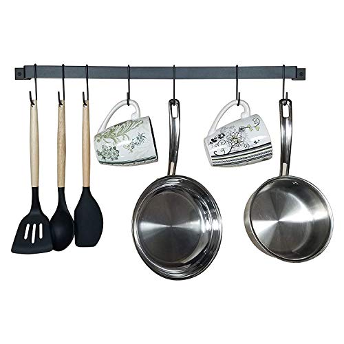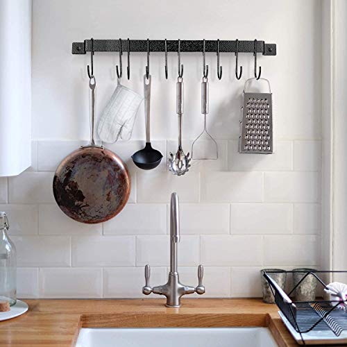Robuust en duurzaam: zeer robuust en goed gebouwd. Gewoon keukengerei kan eraan worden opgehangen, bijvoorbeeld bijvoorbeeld: pannenpot, lepel, deksel, beker, pan enz. Het is ook geen probleem om je gietijzeren keukengerei en je op te hangen. Maak je geen zorgen, het kan van de muur vallen. Bovendien houden de 10 afneembare haken voorwerpen effectief.