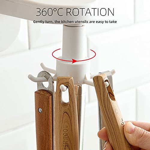 Unspecific 360 graden draaibaar, keukengerei houder met 6 haken, zonder boren, zelfklevend, multifunctioneel…