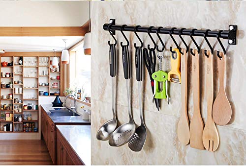 U/D Gourmet keukengerei, rek met 6 haken, wandrails, smeedijzeren ophangwerktuighouder, rek met afneembare S-haken, 16…