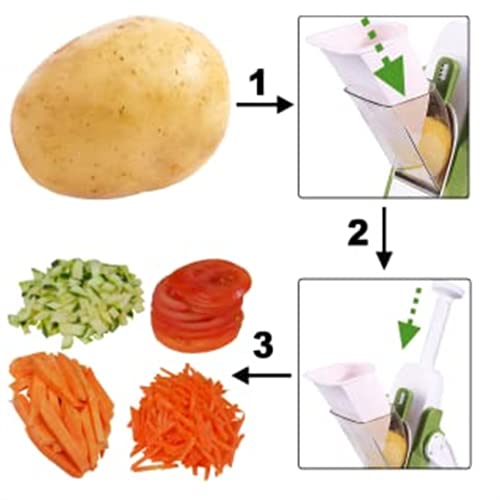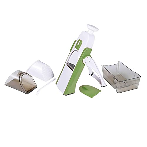1. Deze multifunctionele mandoline snijmachine biedt een snelle, leuke en veilige manier om groenten te bereiden. Ontworpen om naadloos te werken als een mandoline-snijder, snijmachine, hakmolen, julienne-snijder en aardappelversnipperaar, allemaal in één compact, veilig, gebruiksvriendelijk apparaat, het maakt snel werk van moeizame groentevoorbereidingstaken in de keuken.