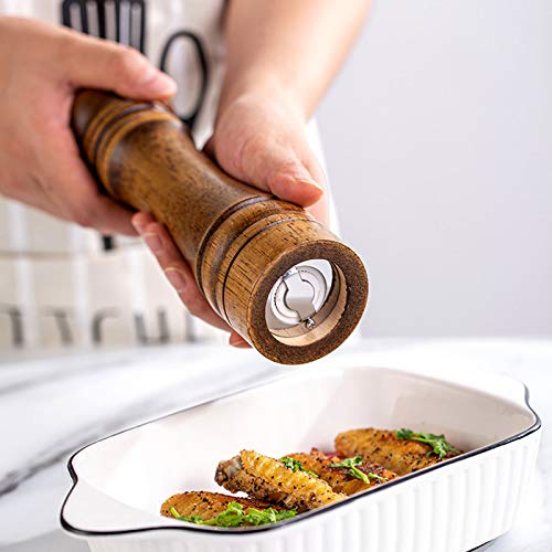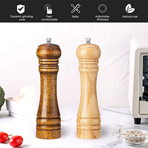 Premium materiaal: de instelbare molens van deze zout- en pepermolenset zijn gemaakt van keramiek om beter te malen en duurzamer te worden. Het bruine houten oppervlak ziet er goed en stijlvol uit en is een must voor je tafel en keuken