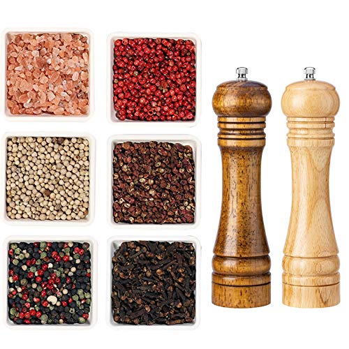 Specification: Pepermolen en zoutmolen set, handmatige kruidenmolen set van 2, houten kruidenmolen keramische molen instelbare fijnheid…