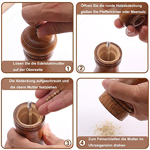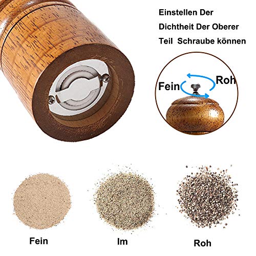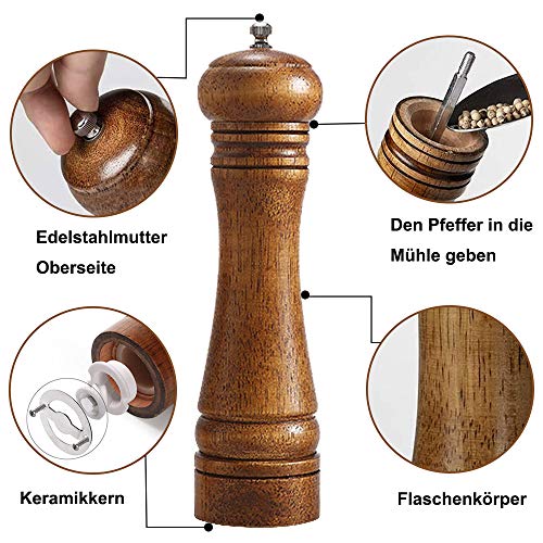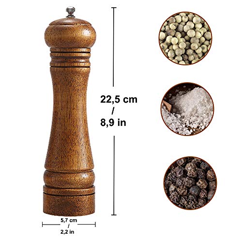 Specification: Pepermolen, houten pepermolen met instelbare grove en fijnmaling, gebruikt voor zout, peper, andere specerijen