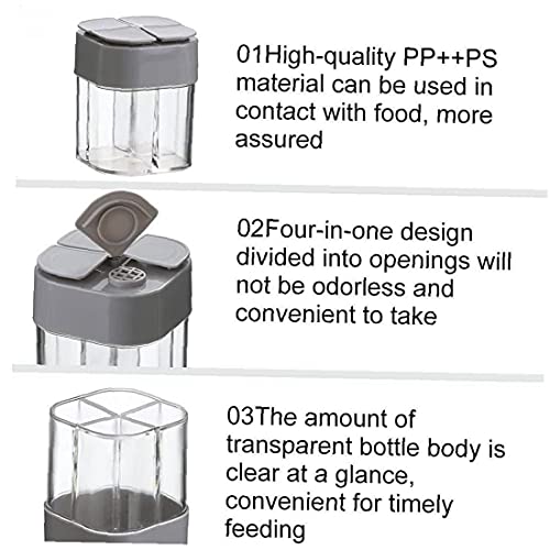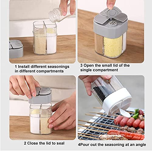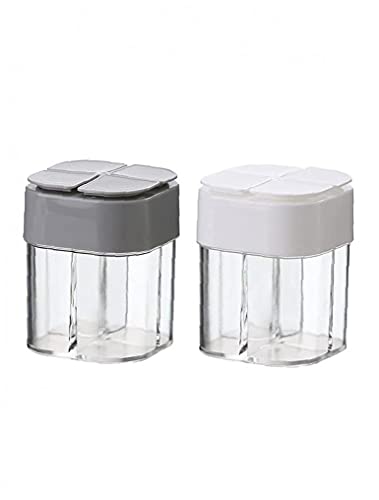 4-in-1 lege specerijen potten: 1 stuks kruidencontainer heeft 4 ruimtes om meervoudig specerijen op te slaan. Onafhankelijke ruimte, geschikt voor opslag op lange termijn, vermijd mengen