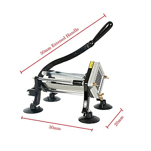Professionele French Fry Cutter: kwaliteit roestvrij staal gemaakt, verlengde handgreep, grotere capaciteit, sterkere basiszuiger, robuuste en restaurant-grade messen (mesmeter: 10 mm en 12 mm). Deze aardappelsnijmachine is ontworpen voor jarenlang gebruik.