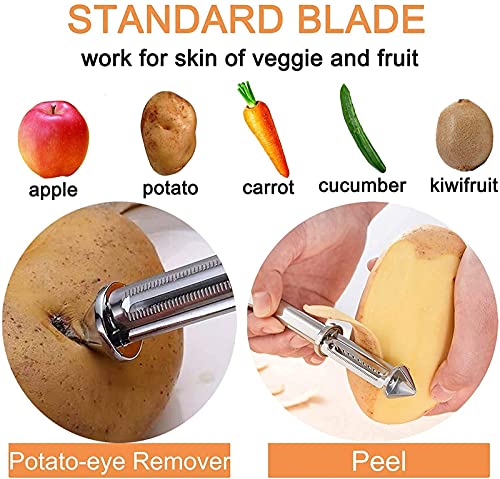 Kitchen essentials: It can be used to peel potatoes, apples, vegetables, carrots, fruits, kiwis, cucumbers, sweet potatoes, and other vegetables. It can be used to peel, dig holes, and shred. It is easier to use our super sharp vegetable peeling blades. It is an essential tool in the kitchen.