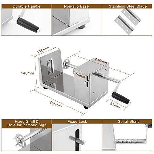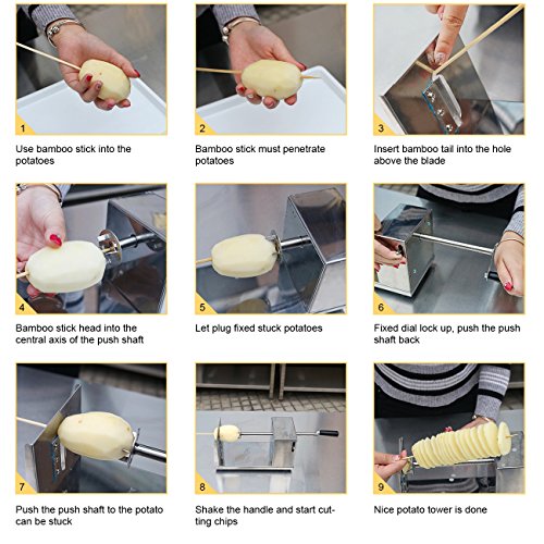 Ideaal voor het snijden van spiralen: maak gedraaide aardappelchips, tornado aardappelen en vegetarische snacks. Deze spiraalfrituursnijder is een geweldig product om thuis restaurants en hotels te gebruiken