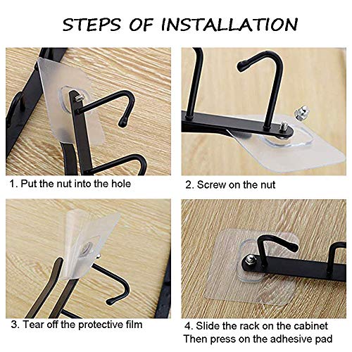 💒Eenvoudig te installeren: schuif de haak naar de kast of plank. De lijm met schroeven helpt om het uiteinde van de haak aan de kast te bevestigen, waardoor wordt voorkomen dat de haak zich naar beneden uitrekt door het gewicht van de beker, zonder te boren.