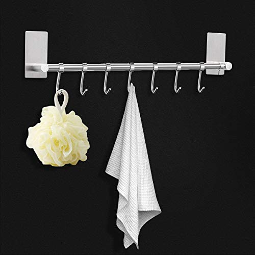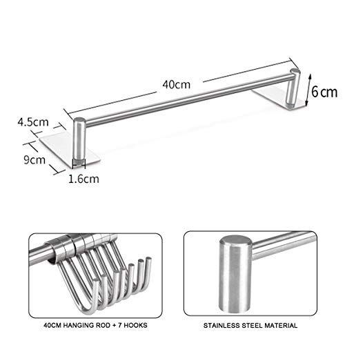 Keukenhulp, hangrek met 7 haken, voor keuken, montage zonder boren, roestvrij staal, keukengerei, houder voor keuken en badkamer