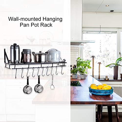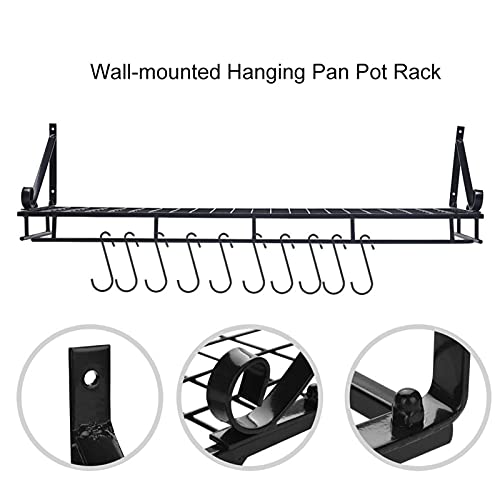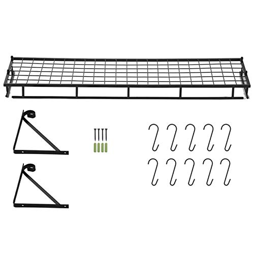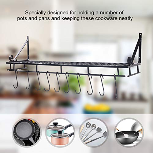 Eenvoudige stijl metalen keuken pannen pannenrek speciaal ontworpen voor het houden van een aantal potten en pannen en deze kookgerei netjes te houden. Gebruikt het met de plank optie. 10 stuks sterke metalen haken voor het vrij verplaatsen en ophangen van uw kookgerei of keukengerei om veel ruimte te besparen voor een kleine keuken. Het is speciaal behandeld om roesten te voorkomen. Premium ijzeren constructie voor een lange levensduur. Het is perfect om de keuken overzichtelijk en georganiseerd te houden, zodat je je keukengerei in een mum van tijd binnen handbereik hebt. Dit rek kan in je keuken, balkon of badkamer worden geïnstalleerd en kan ook worden gebruikt om vele andere soorten huishoudelijke artikelen op te hangen.