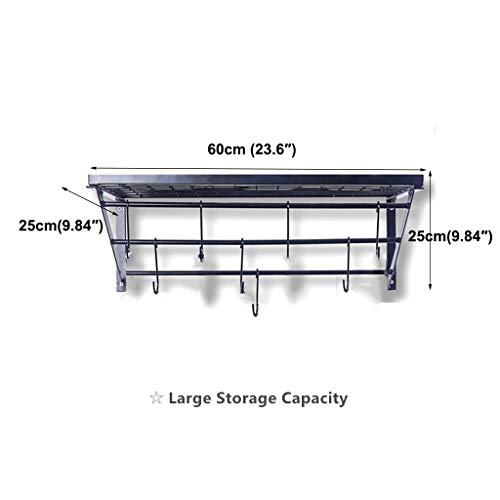 ✈Grote opslagcapaciteit – pot Rekafmeting: 23,6 inch x 9,84 inch x 9,84 inch (60 * 25 * 25 cm) met 10 beweegbare ophanghaken. Je kunt veel spullen op het grote opbergplateau plaatsen met pannen die aan de haken hangen.