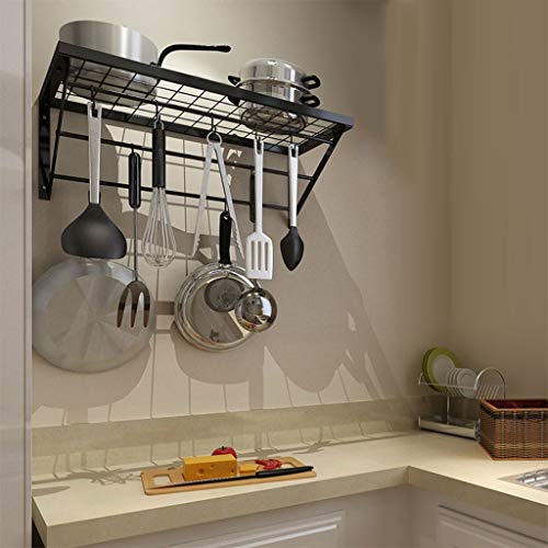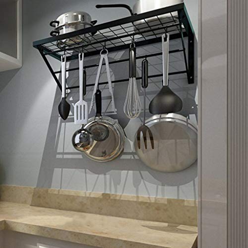 Specification: Pannenrekken met 3-laags hangrails, aan de muur gemonteerde zwarte keukenorganiserrekken met haken, multifunctionele…