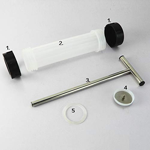 Wordt geleverd met 3 verschillende spuitmonden (2,3 cm / 1,9 cm / 1,5 cm) om verschillende soorten worst te maken.