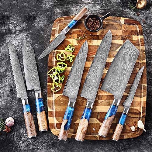 Kitchen Knife Set Damascus Steel VG10 koksmes vleesmes Peeling Mes van het brood Blue Hars en Gekleurde houten handvat…