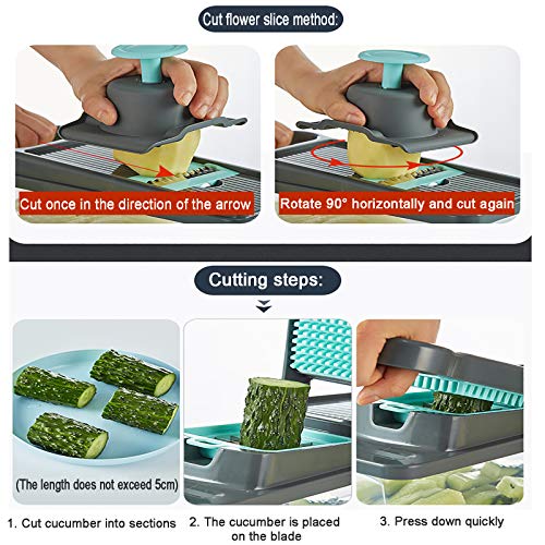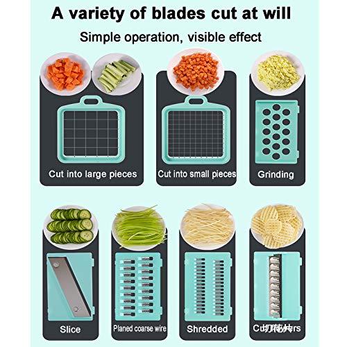 Specification: Salad Food Chopper voor Fruit Salad Carrot,7 Blades Onion Mincer Chopper Dicer Multifunctional Menoline Slicer Manual…