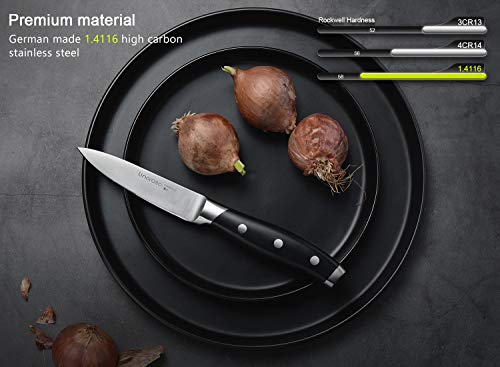 Specification: Linoroso groentemes, 9 cm, klein keukenmes met elegante geschenkdoos, gesmeed Duits scherp mes van roestvrij staal, Full…