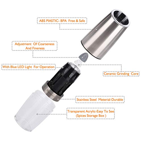 Specification: Elektrische zout- en pepermolenset, automatisch door zwaartekracht geactiveerd, instelbare grofheid Pepermolens met één…
