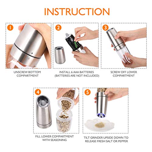 4. Batterijvoeding: 6 AAA-batterijen werken in elke elektrische zoutmolen, geen knoppen om in te drukken of handmatig slijpen (batterijen niet inbegrepen).
