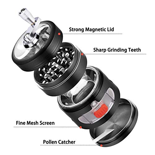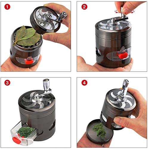 Specification: Hand Spice Grinder Metalen Kruidenmolen met Stuifmeel Catcher Handmatige Spice Grinder met Lade, Zwart