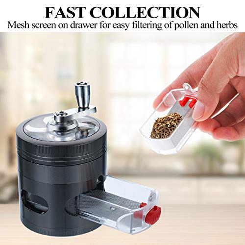 Hand Spice Grinder Metalen Kruidenmolen met Stuifmeel Catcher Handmatige Spice Grinder met Lade, Zwart
