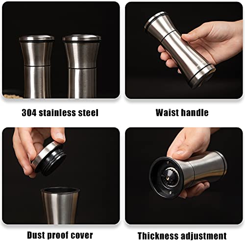 KINGTUHUA Zout- en Pepermolen, 2-Delige Set met Keramische Maalwerk ,Peper- & Zoutmole uit RVS Glas, Verstelbare Molen…