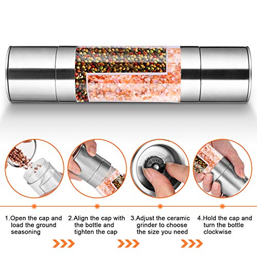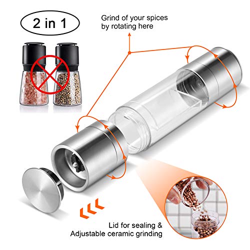 Specification: Sailnovo Dual zout- en pepermolenset 2-in-1 peperzoutmolen, slank roestvrij staal met verstelbaar keramisch maalwerk…