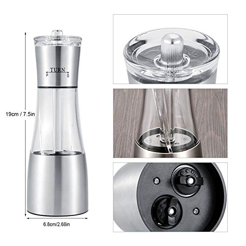 Specification: Zout- en pepermolens Hervulbare, 2 in 1 voedselmolen Roestvrijstalen zoutmolen voor zwarte peper Peperkorrels
