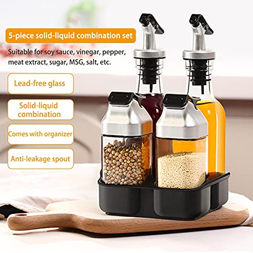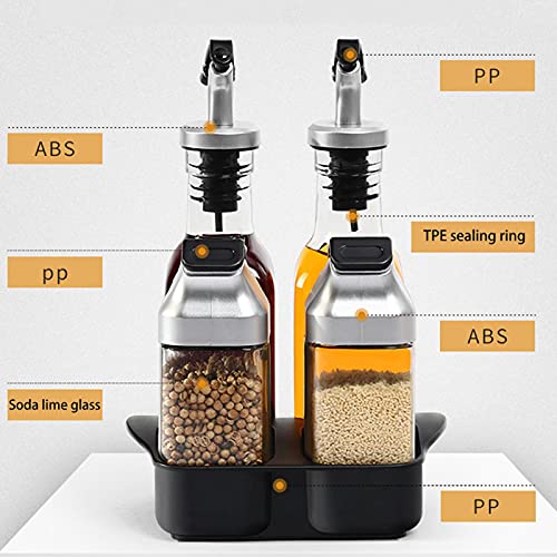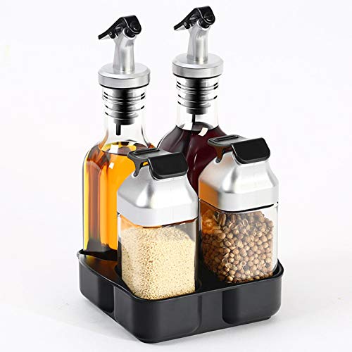 Set bevat: Set bevat 5 stuks set van 2 glazen flessen zout en peper set kan 3 oz/90 ML kruiden bevatten, 2 glazen flessen olijfolie en azijn kunnen ongeveer 6 ml./175 bevatten. One Study Tray Holder die ervoor zorgt dat het aanrecht er super georganiseerd uitziet.