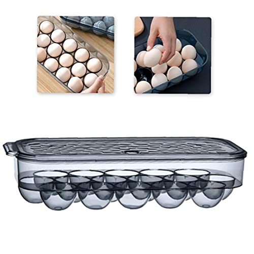 Specification: Koelkast Egg Houder Stapelbare Egg Opslag Lade Container 16-Grid Box Organizer met Lid Doorschijnend Zwart Keuken…