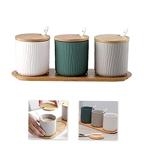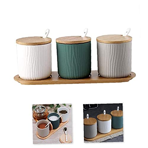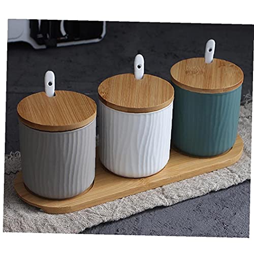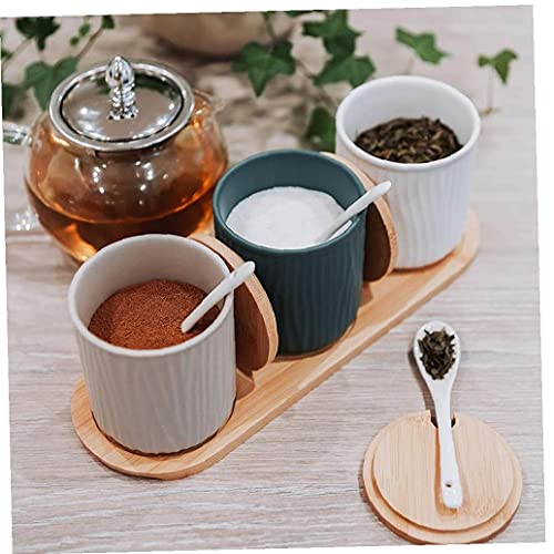 Specification: Kruidencontainers kunnen keramische kruidenbodem suikerpotten instellen met lepels deksels voor losse thee koffie 3 stks…