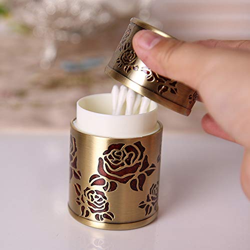 【Ontwerp met uitgesneden bloemen】: Oppervlak van wattenstaafje houder concaaf en bol houtsnijwerk, elegante koperkleur, een geweldige tafelbladdecoratie.